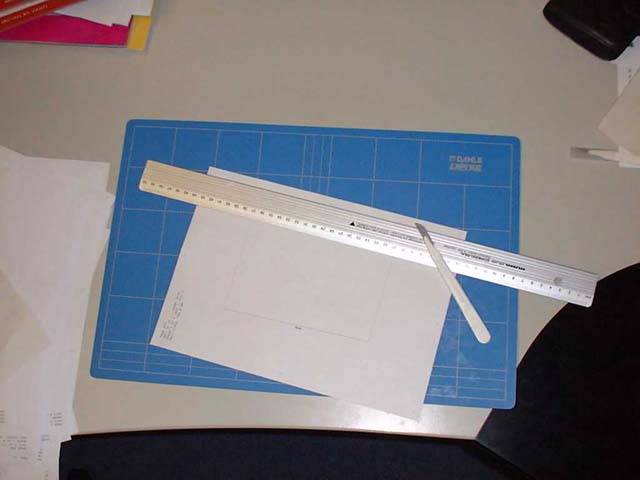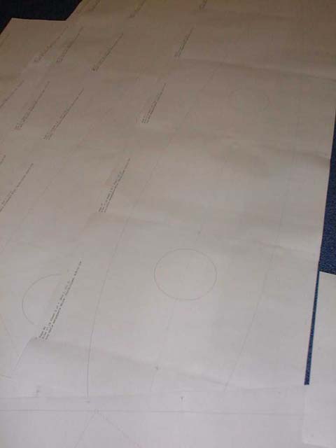 Die Profile, die Diagonalprofile, die oberen und die unteren Panels werden auf Standardpapiergrössen ausgedruckt (bei mir A4). Dabei kommen ca. 360 Blatt zusammen, ein Laserdrucker ist zu empfehlen. Da ich die Pläne durch den Stoff durchgepaust habe, habe ich auch wert auf einen satten Ausdruck (neuer Toner) gelegt. Die Ausdrucke habe ich auf einer Seite mit den Schnittmarken bündig abgeschnitten. Dabei habe ich sowohl einen grossen Papierschneider als auch ein scharfes Federmesser mit Stahllineal benutzt, geht beides prima. |