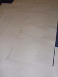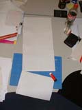 All the sheets belonging to one part of the kite then where glued together using a paper glue stick. The vents were glued to the lower panels, marking a diagonal line through them for to get appropriate vents. The first long evening was spent with the junkie (6-8 hours). |